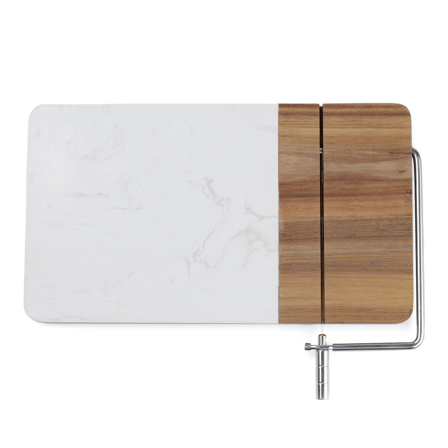 Made from quality Marble + Acacia Wood and cut from one piece, this Serving Cheese Board is extremely durable and has no chance of splitting. The board features a rustic rope tie, so the board can be hung on the wall when not in use.